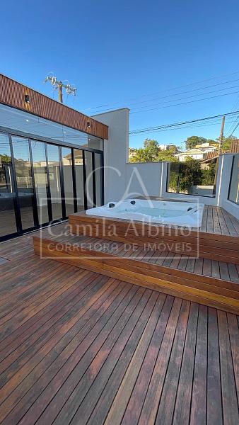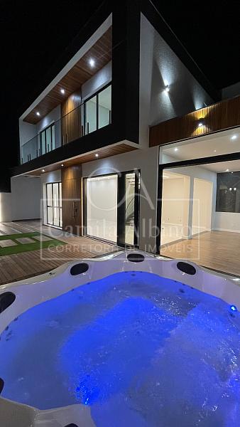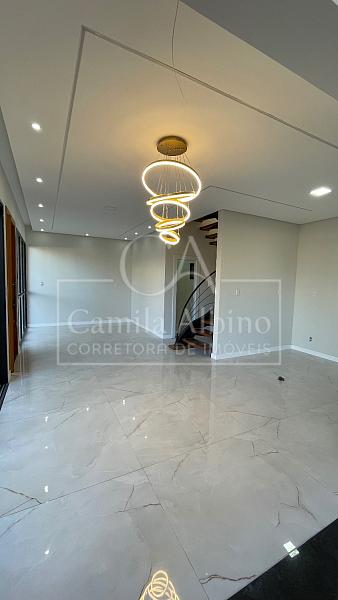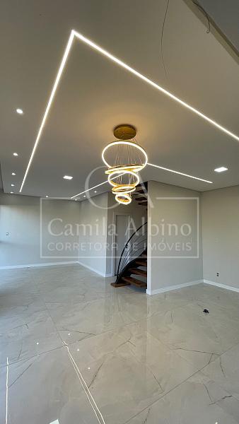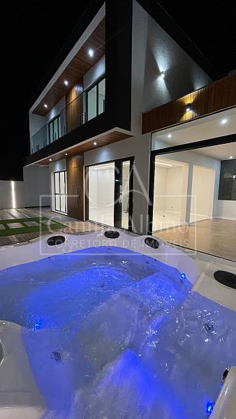O interior do sobrado com uma área social integrada, ideal para receber amigos. Suíte master e dois dormitórios, jacuzzi e um amplo espaço aberto.